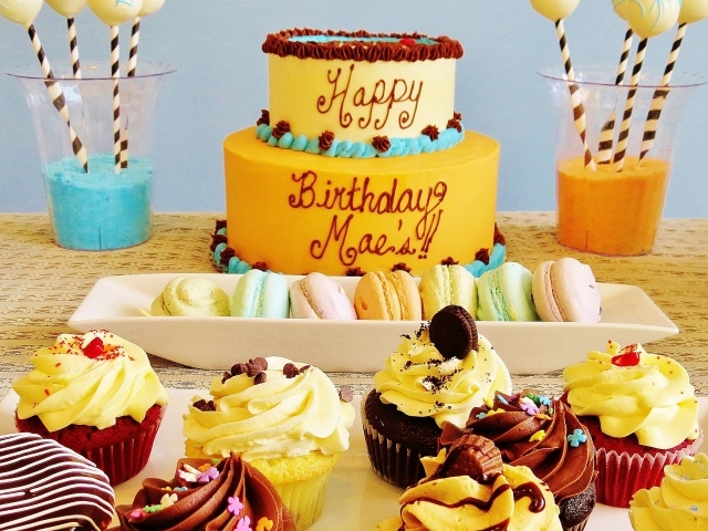 Обои: Большой красивый торт и капкейки ко Дню рождения