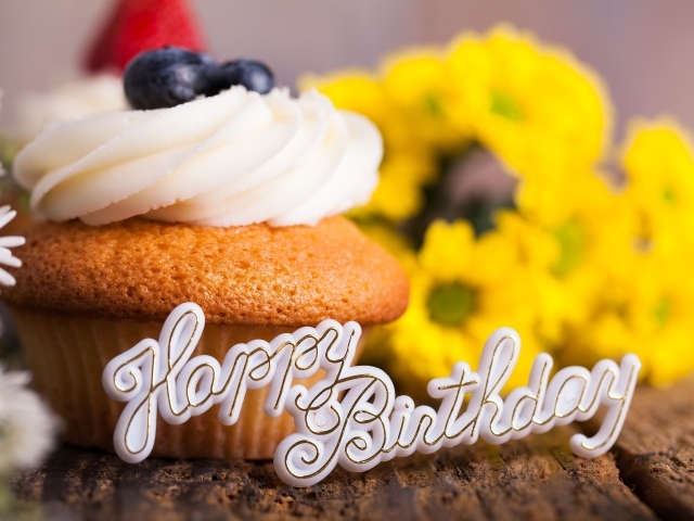 Надпись с днем рождения с праздничным кексом - 7000x4667
