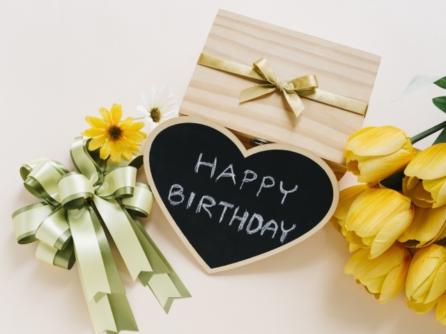 Подарок и желтые тюльпаны на день рождения - 6000x4000