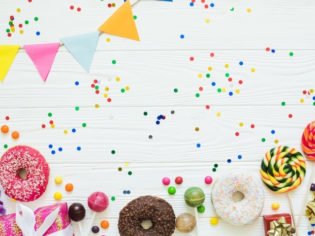 Белый фон с флажками и сладостями на день рождения - 5760x3840