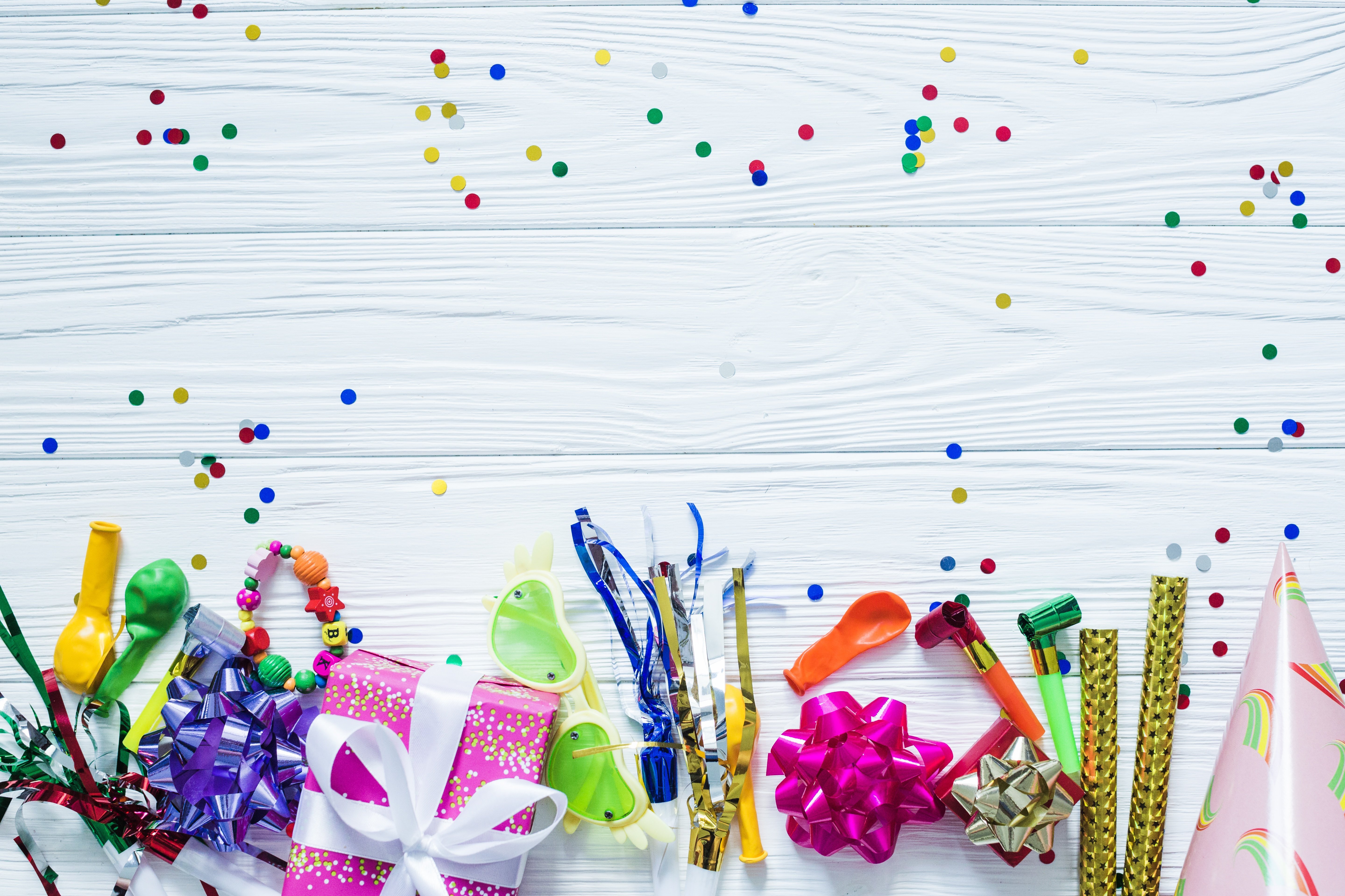 Атрибуты для дня рождения на белом фоне - 5760x3840