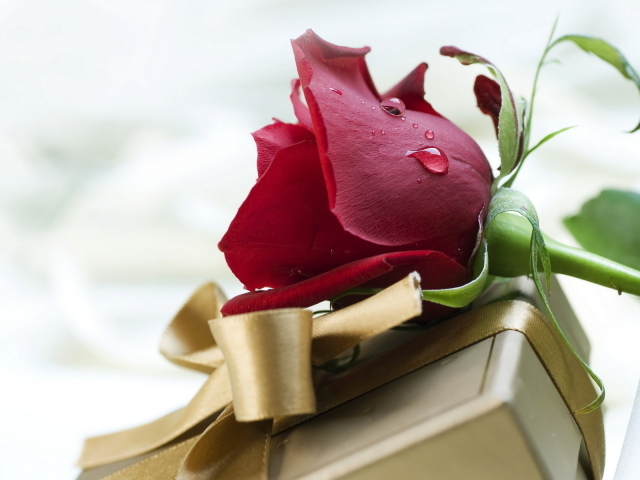 Обои: Красная роза и подарок на день рождения