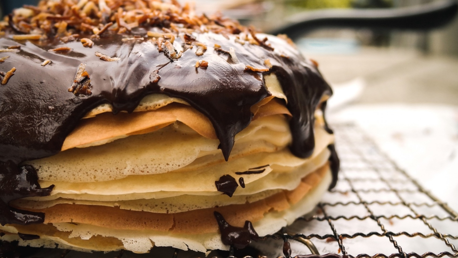 Обои: Блинный торт с шоколадом на Масленицу 2017