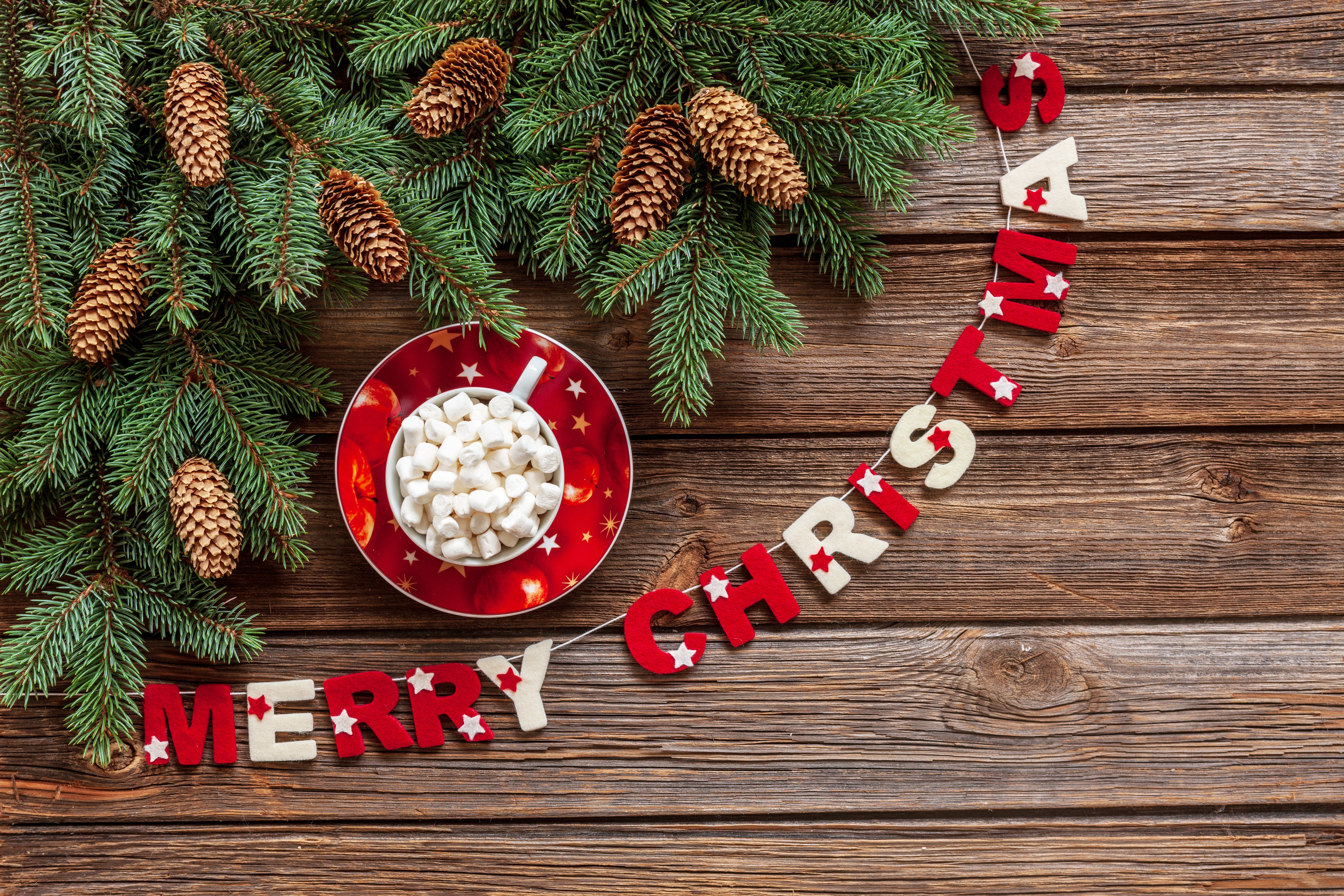 Открытка на Рождество с еловыми ветками - 5616x3744