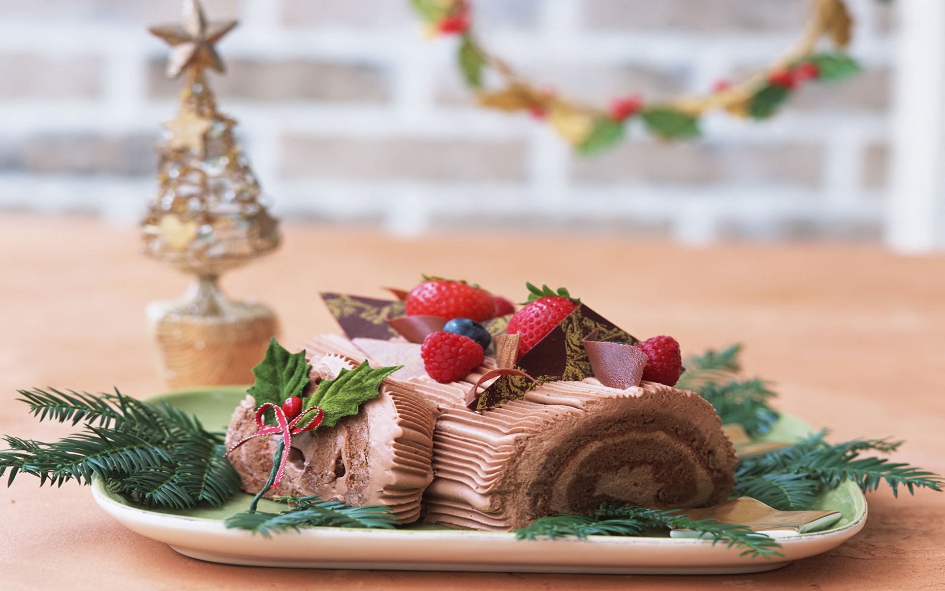 Шоколадный кекс с клубникой на рождество - 1920x1200