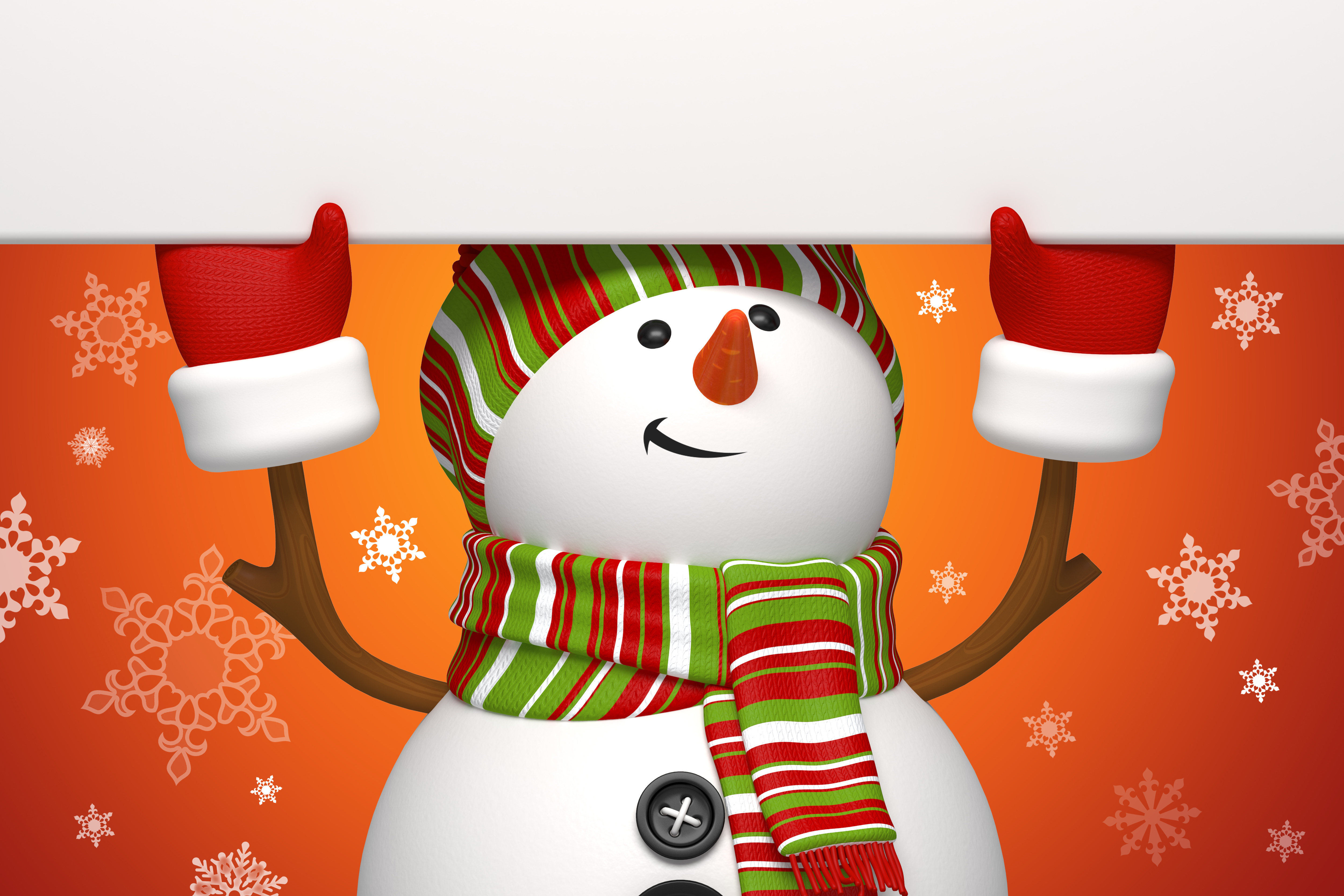 Снеговик на оранжевом фоне - 5000x3333
