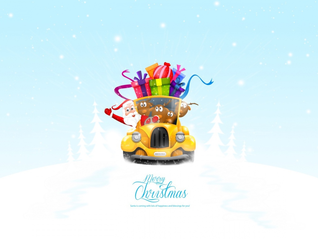 Дед мороз на автомобиле Обои для рабочего стола 1024x768