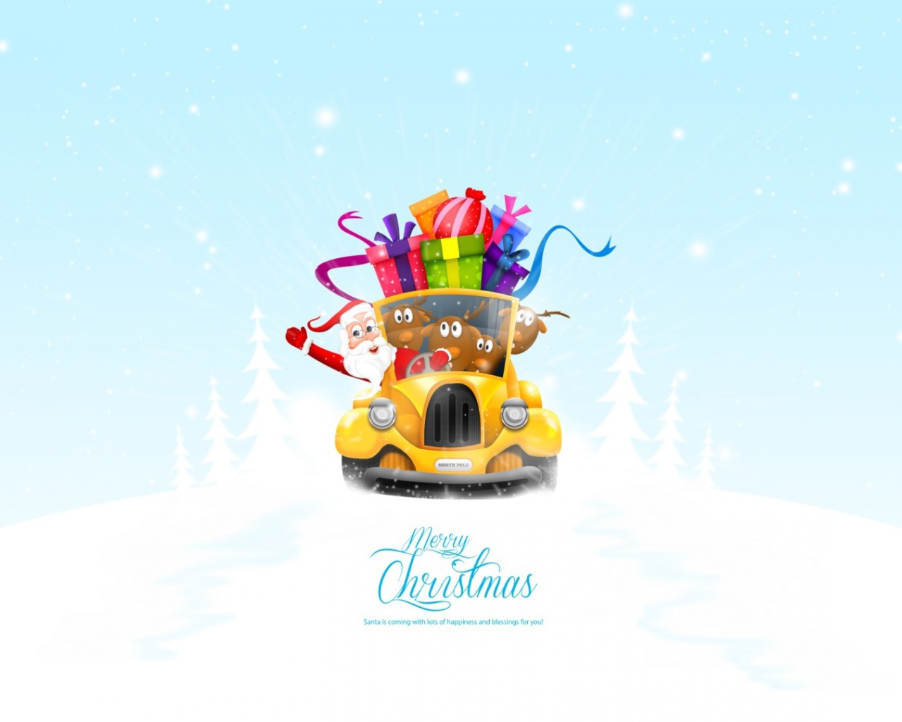 Дед мороз на автомобиле Обои для рабочего стола 1280x1024