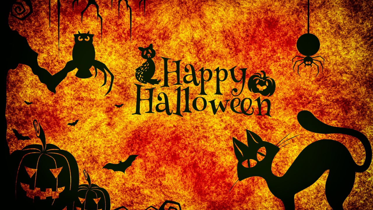 Надпись Счастливого Хэллоуина на оранжевом фоне Обои для рабочего стола 1280x720