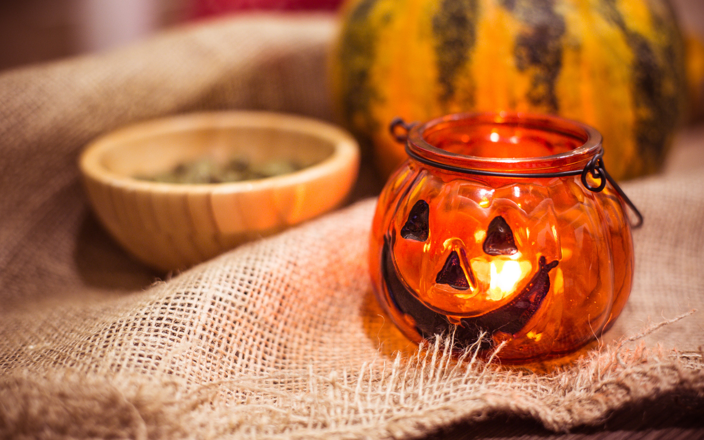 Светильник тыква на столе на праздник Хэллоуин - 4000x2667