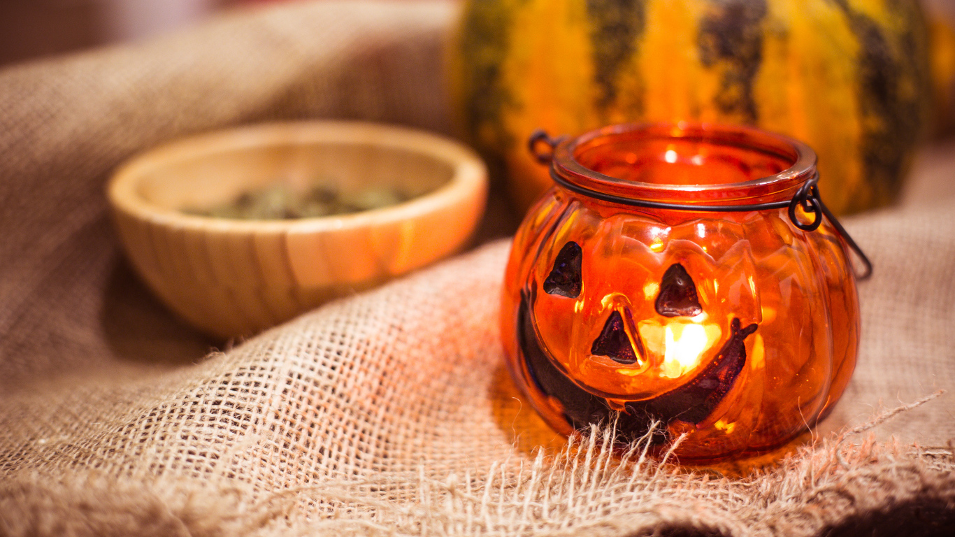 Светильник тыква на столе на праздник Хэллоуин - 4000x2667