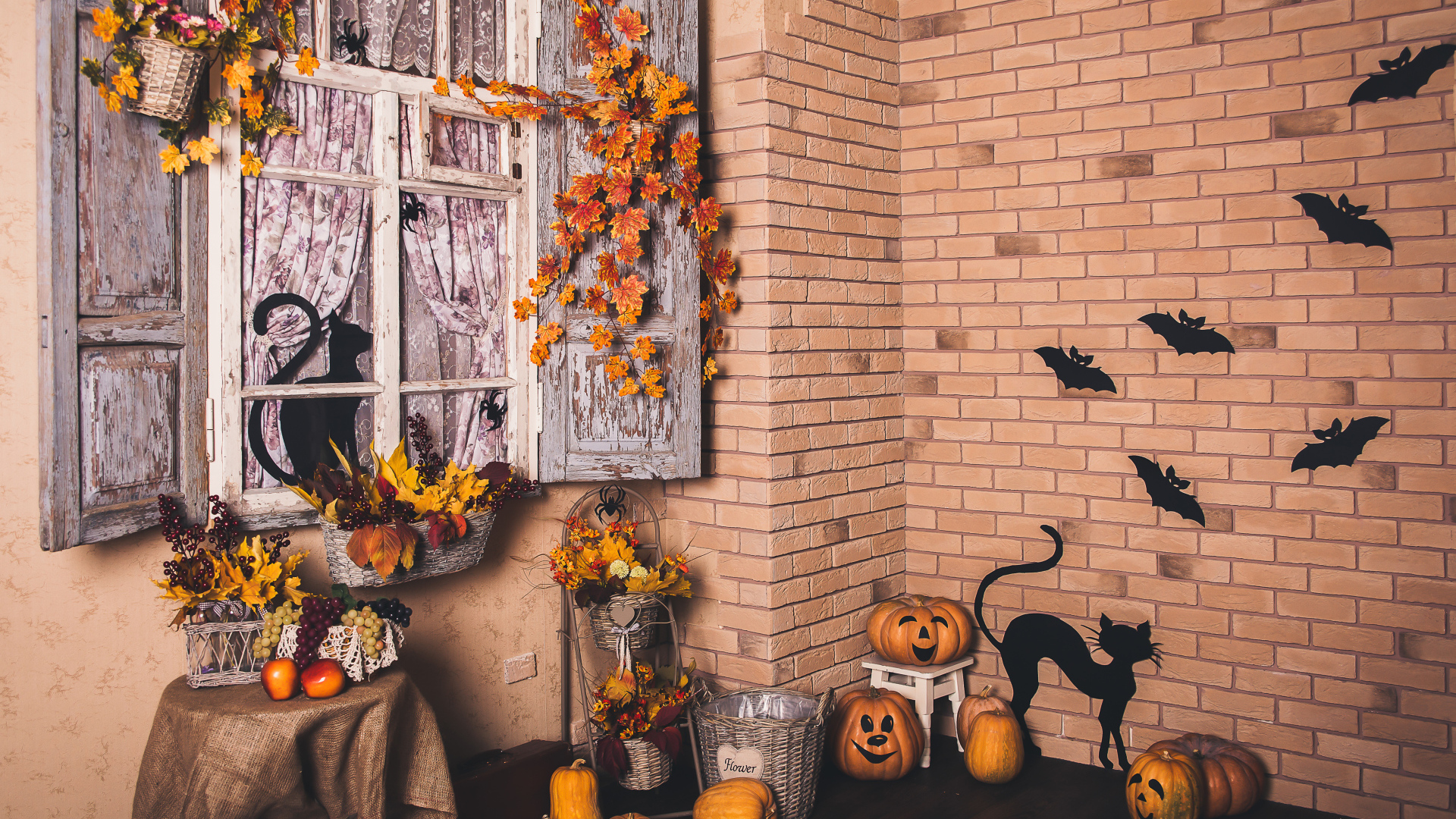 Комната украшена декором на праздник Хэллоуин Обои для рабочего стола 1920x1080