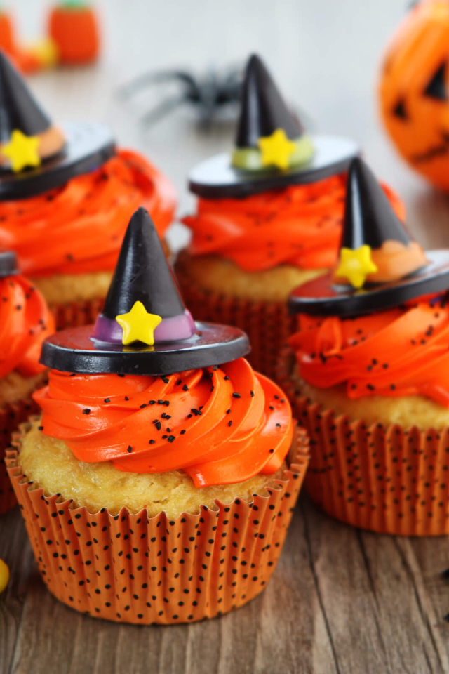 Кексы для ведьмы с пауками на праздник Хэллоуин