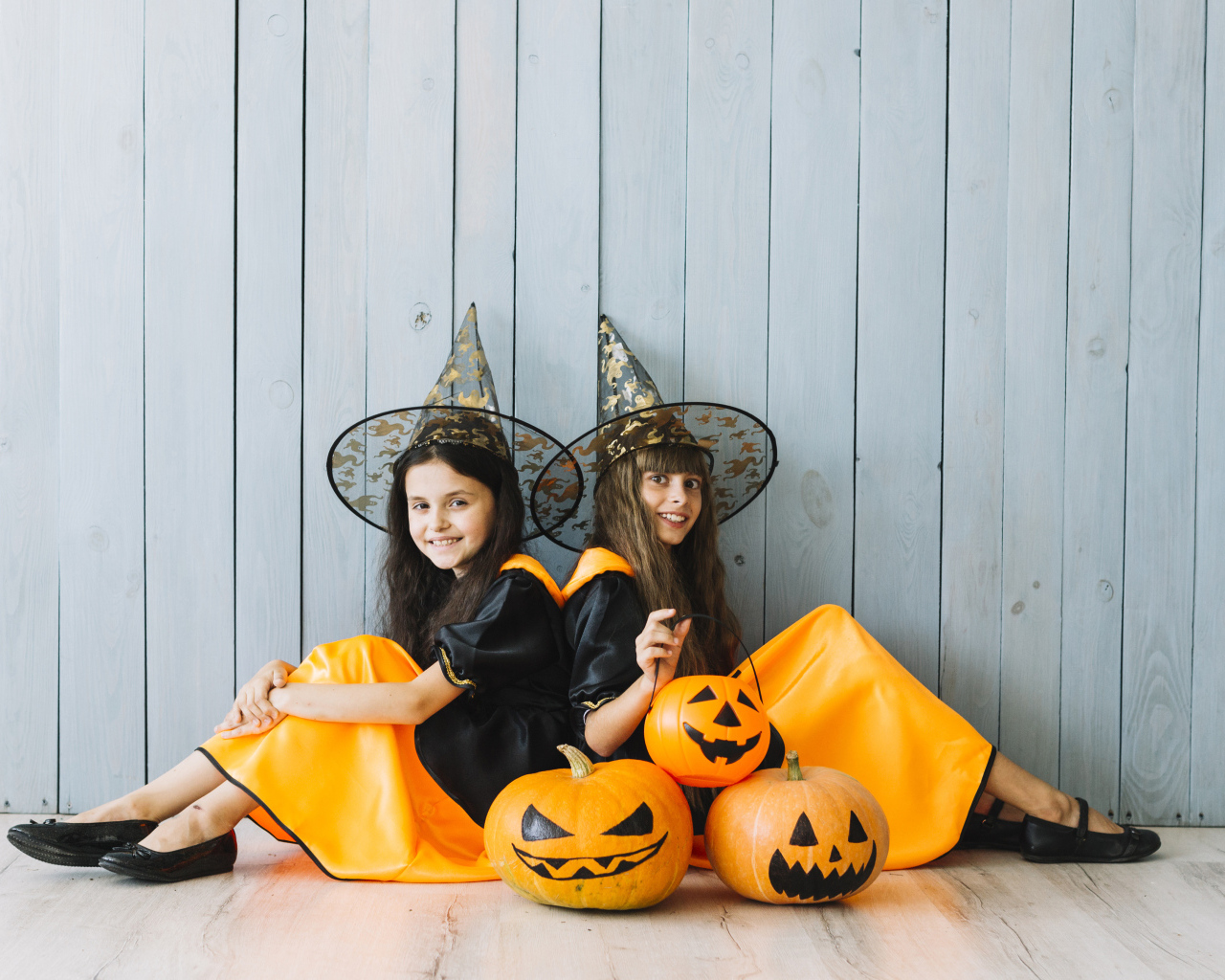 Две маленькие девочки в костюмах на Хэллоуин - 3800x2715