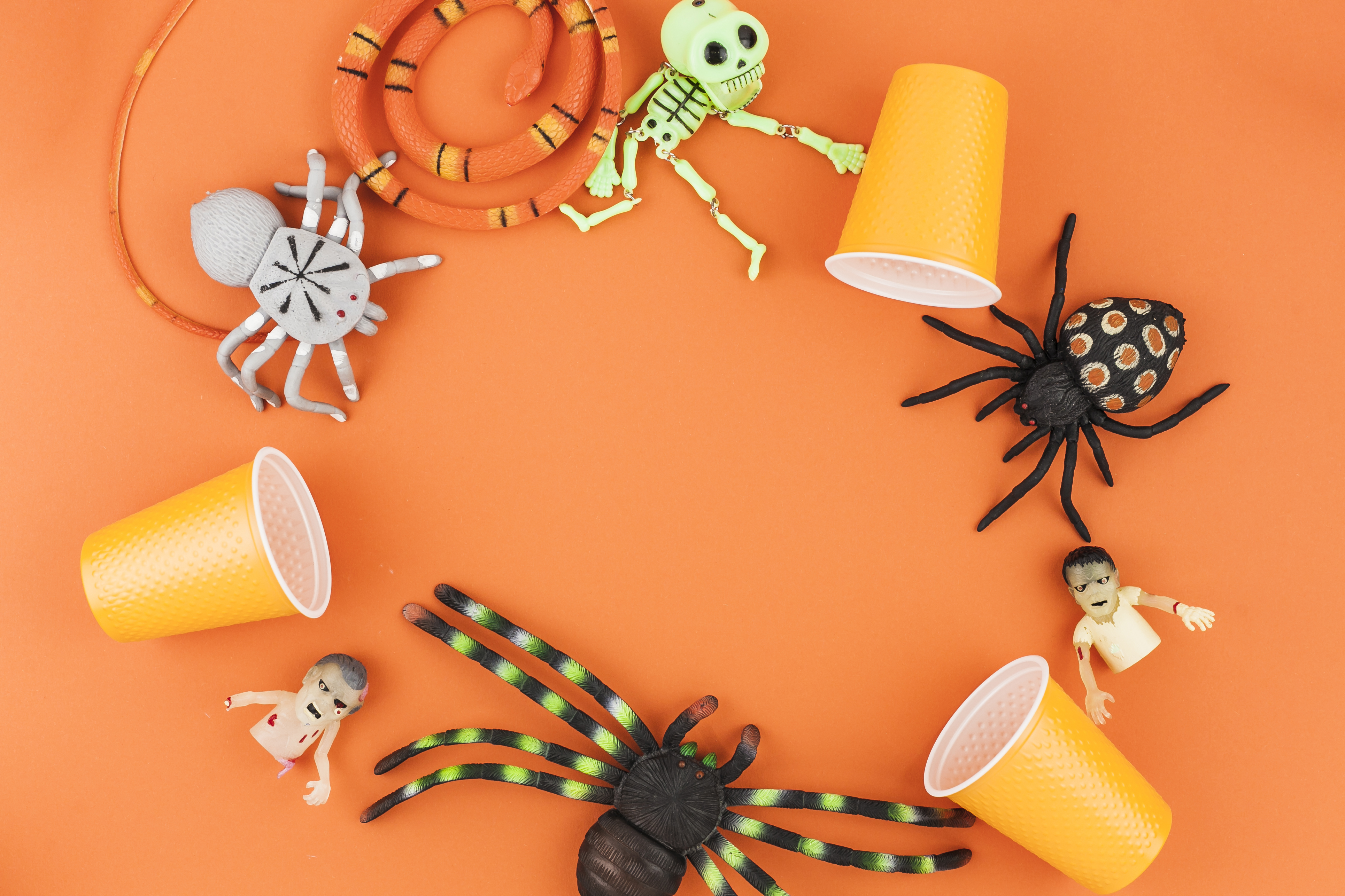 Игрушки на Хэллоуин на оранжевом фоне - 3861x2574