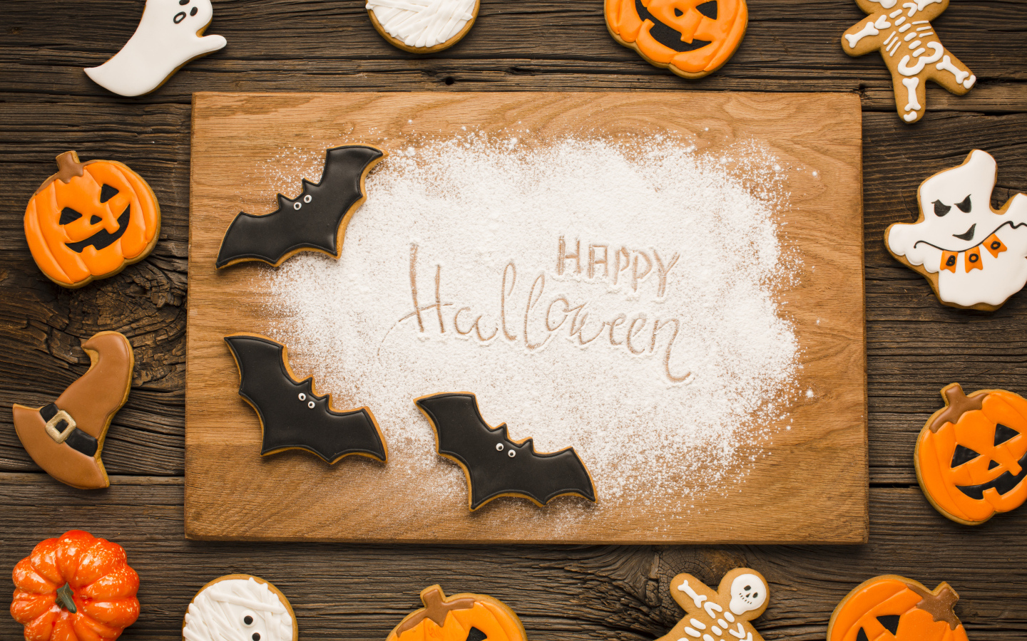 Открытка на праздник Хэллоуин с печеньем и доской - 5760x3840