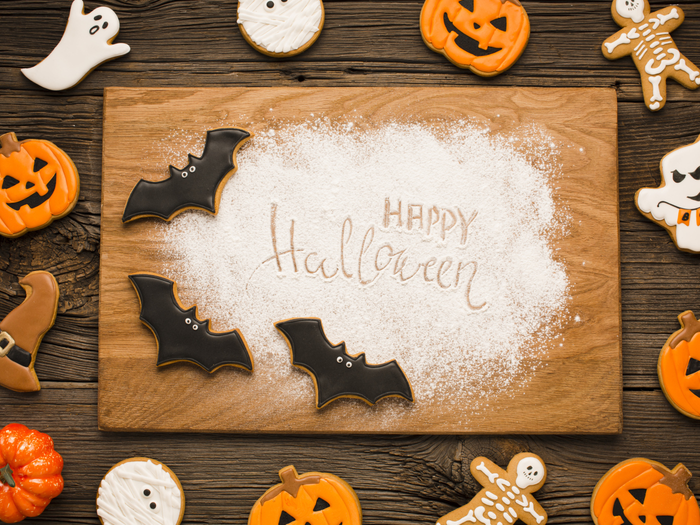 Открытка на праздник Хэллоуин с печеньем и доской - 5760x3840