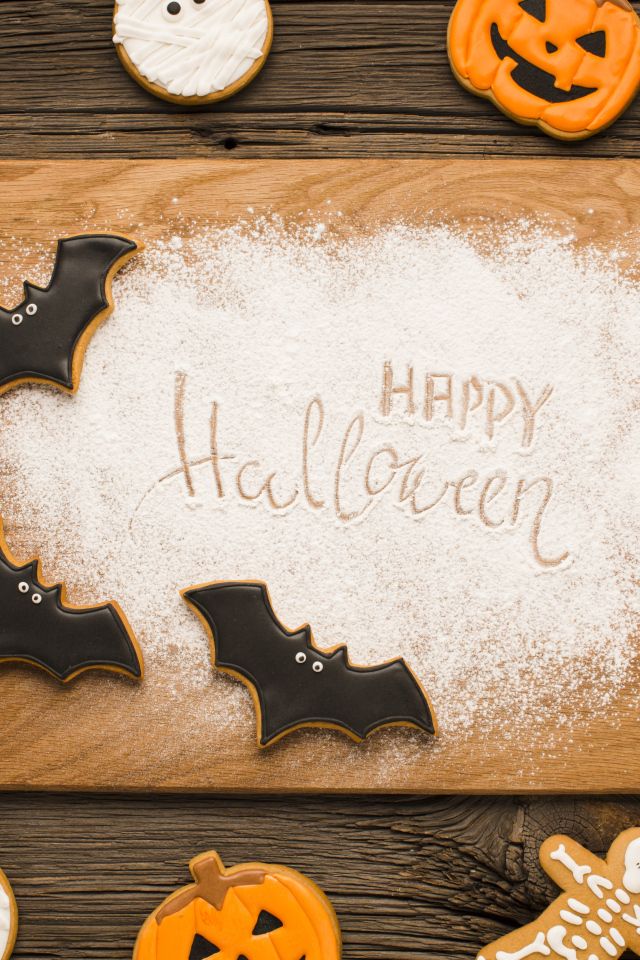 Открытка на праздник Хэллоуин с печеньем и доской - 5760x3840