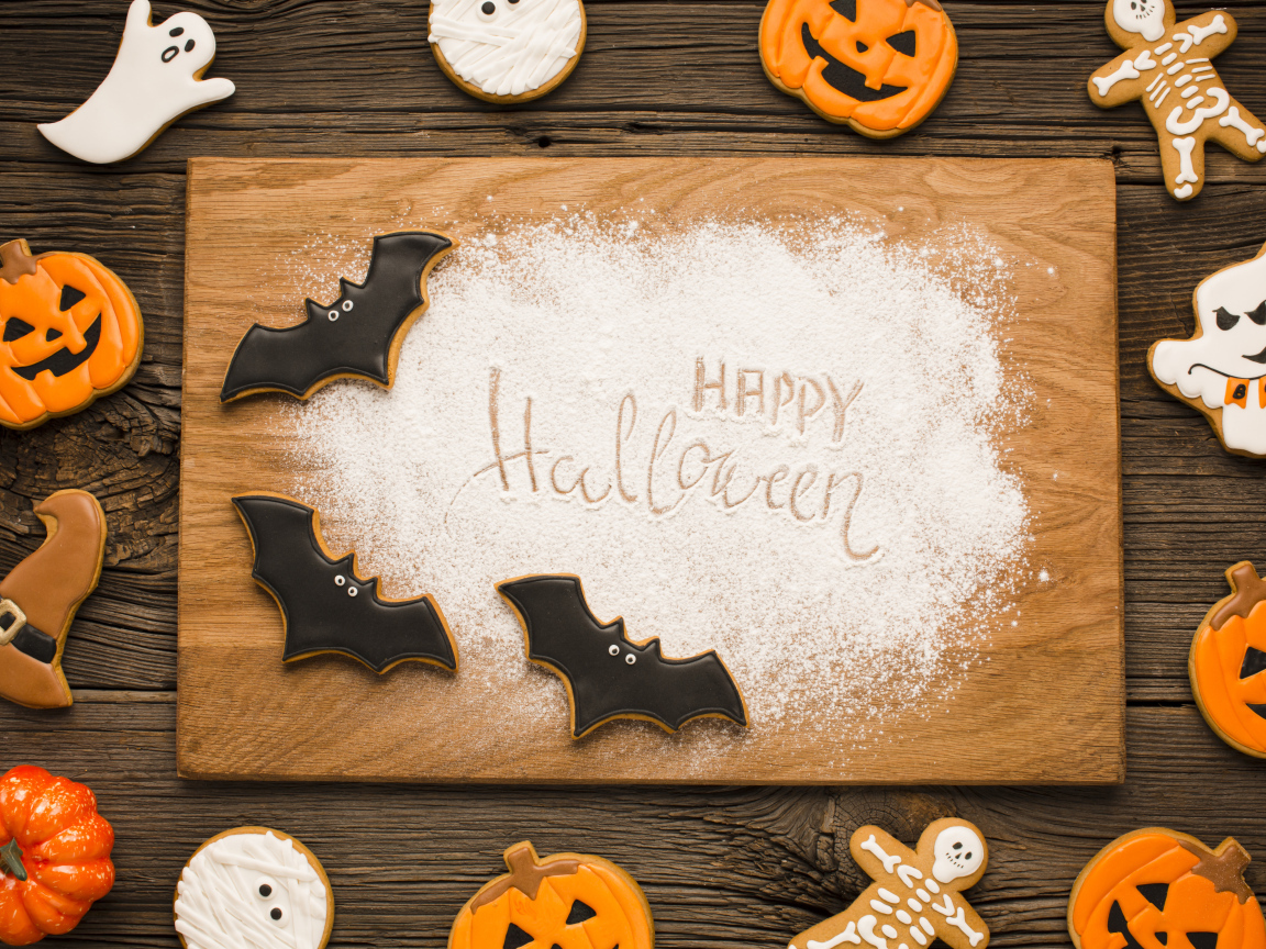 Открытка на праздник Хэллоуин с печеньем и доской - 5760x3840