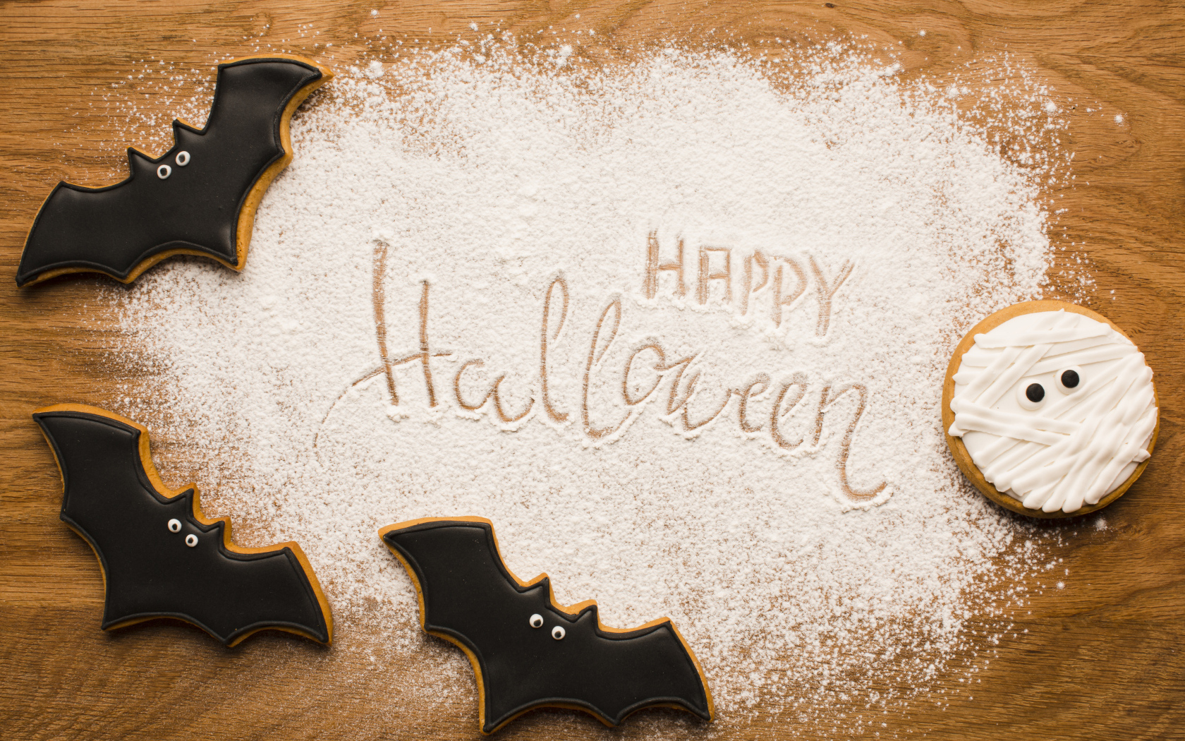 Печенье в форме летучих мышей на разделочной доске на Хэллоуин - 5658x3782