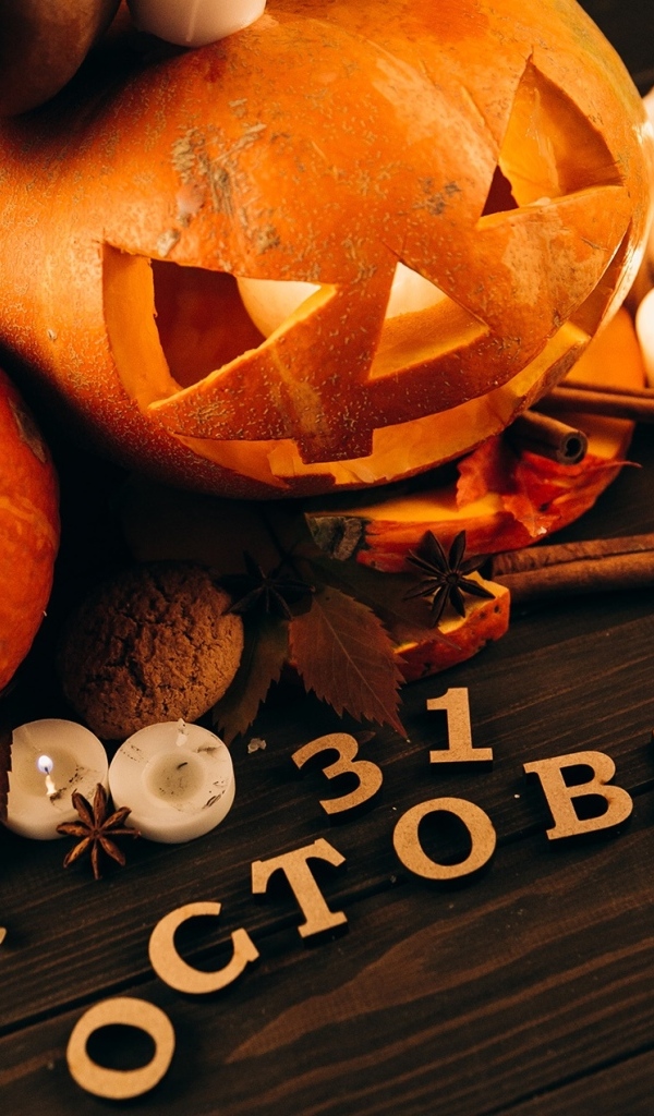 Большая тыква фонарики на праздник Хэллоуин Обои для рабочего стола 600x1024