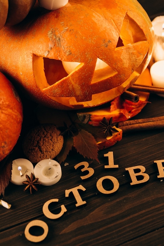 Большая тыква фонарики на праздник Хэллоуин Обои для рабочего стола 640x960