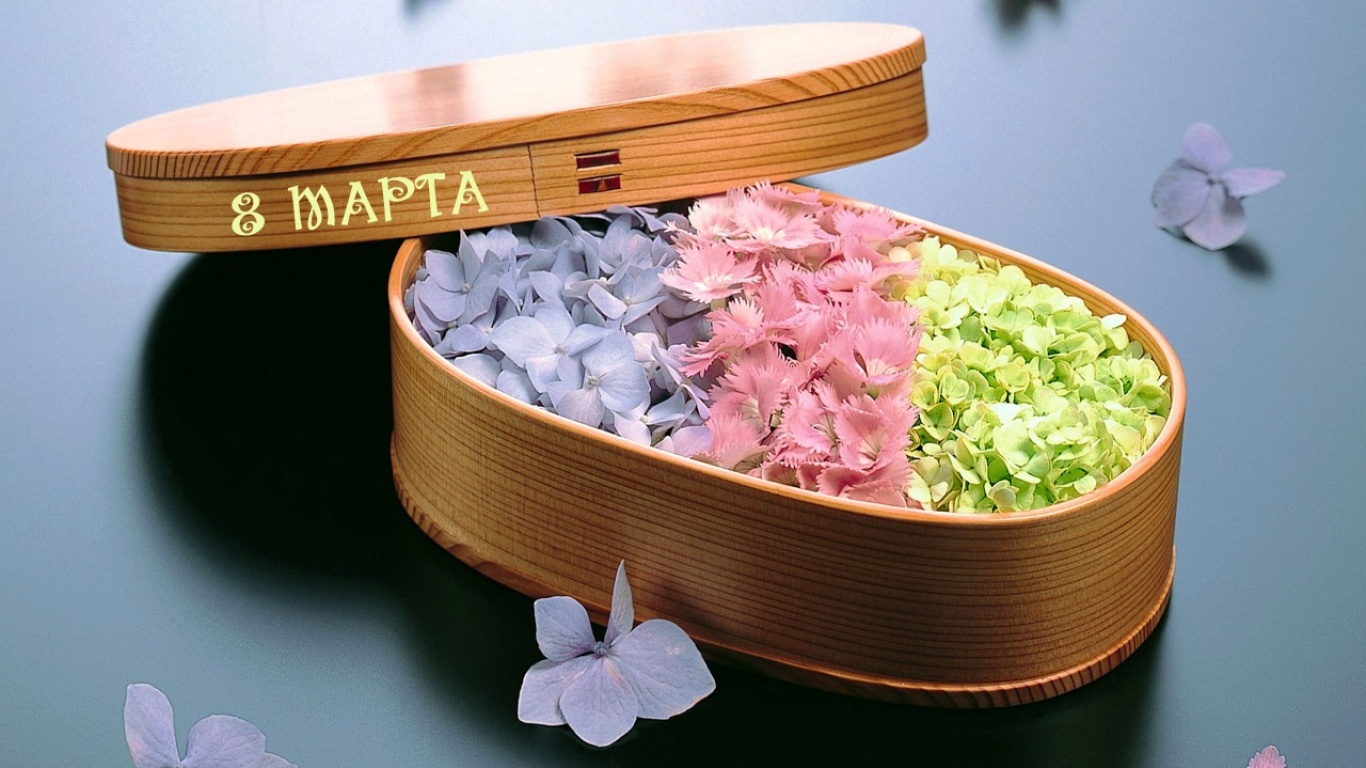 Коробочка с цветами - 1366x768