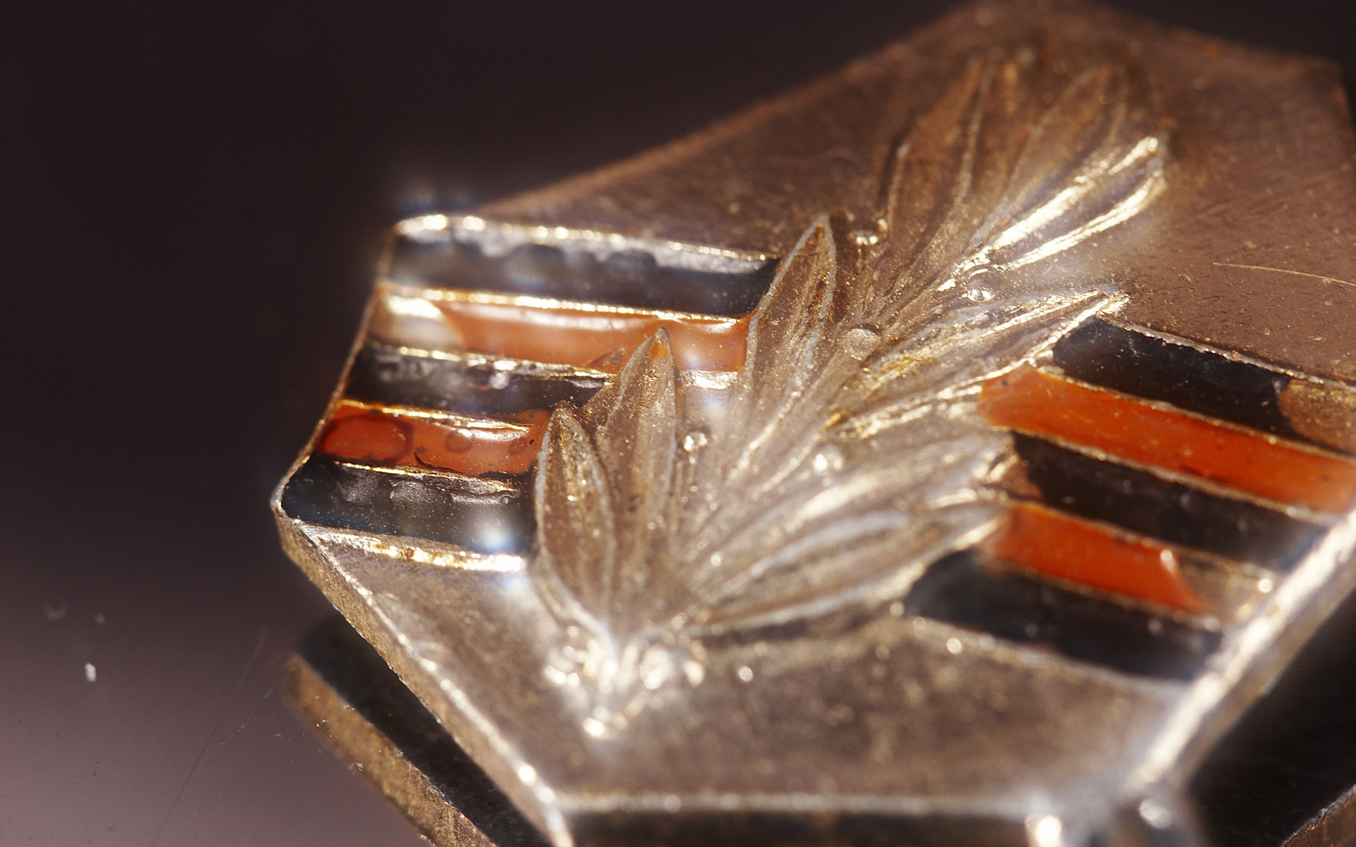 Красные гвоздики с лентами на сером фоне на День Победы 9 мая