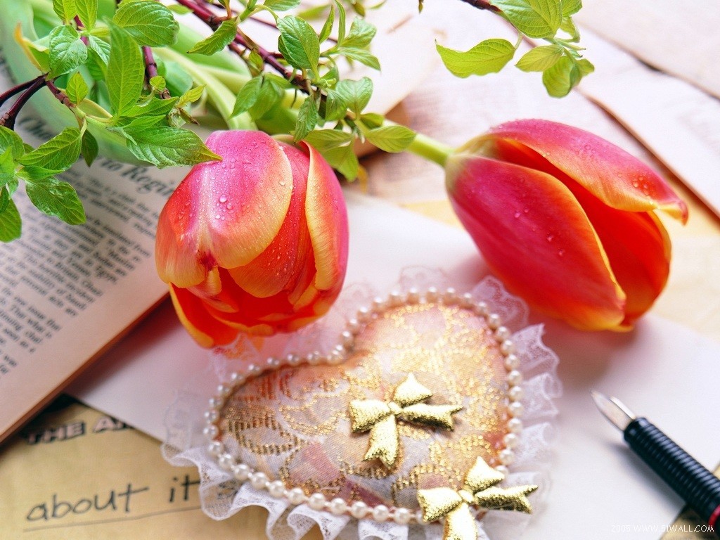 Цветы и сердечко на День Святого Валентина - 1024x768