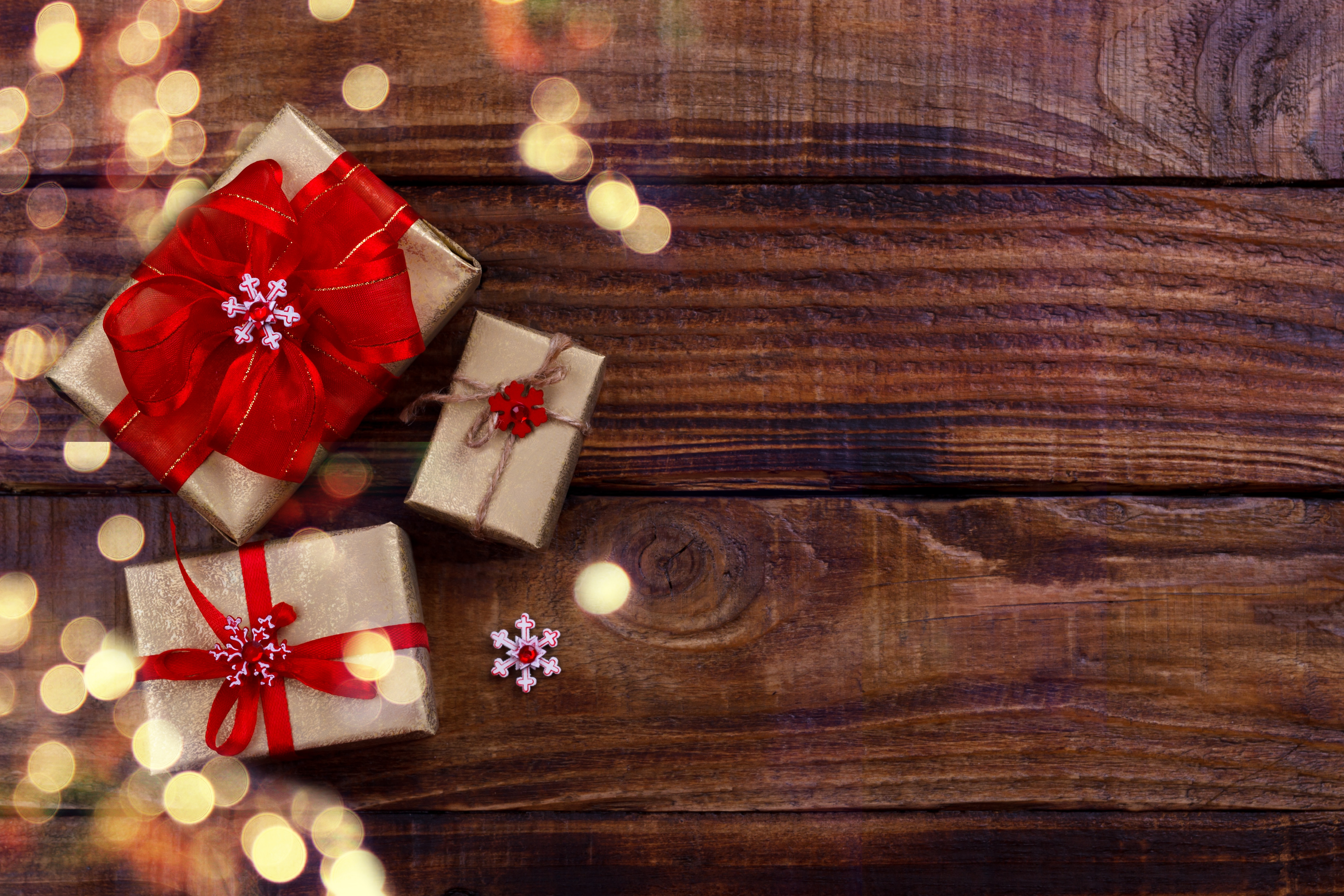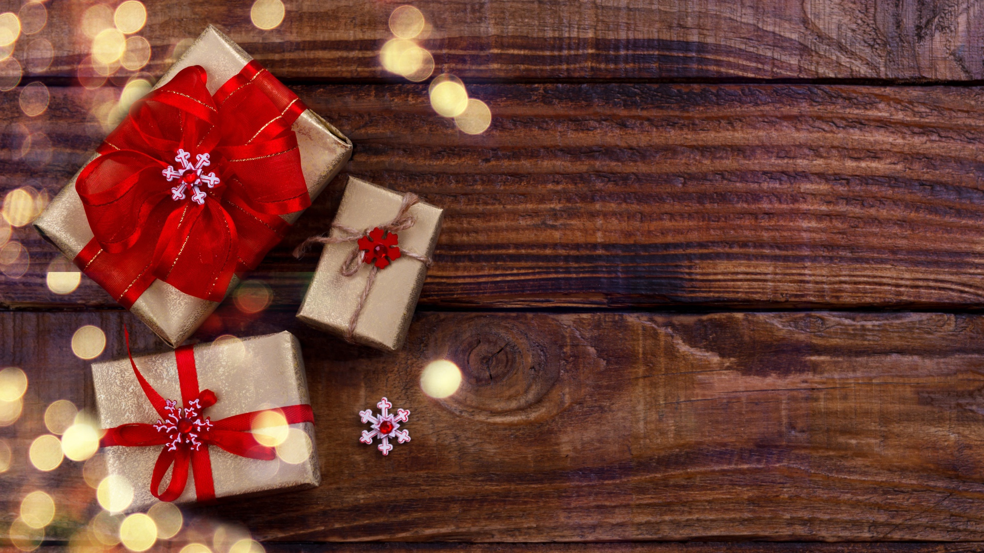 Праздничные подарки на деревянном фоне Обои для рабочего стола 1920x1080