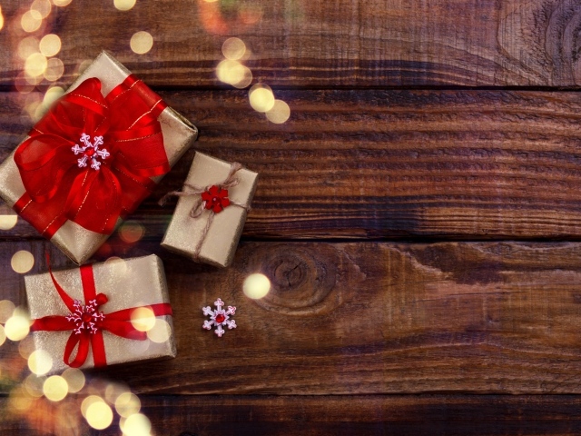 Праздничные подарки на деревянном фоне Обои для рабочего стола 640x480