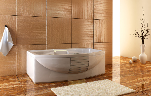 Белая ванная на фоне коричневой стены Обои для рабочего стола 600x382