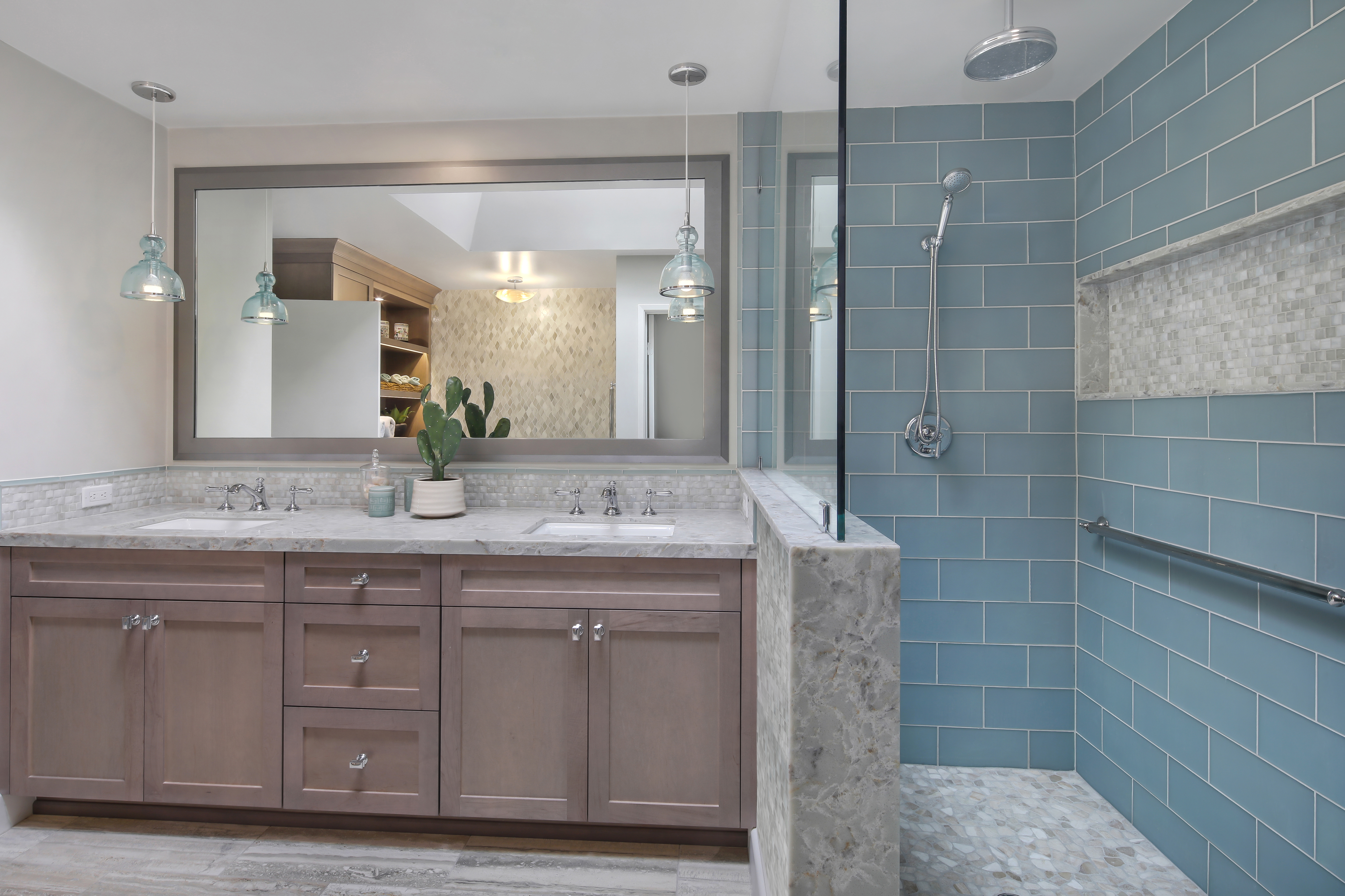 Интерьер ванной комнаты с большой ванной и стенами оранжевого цвета