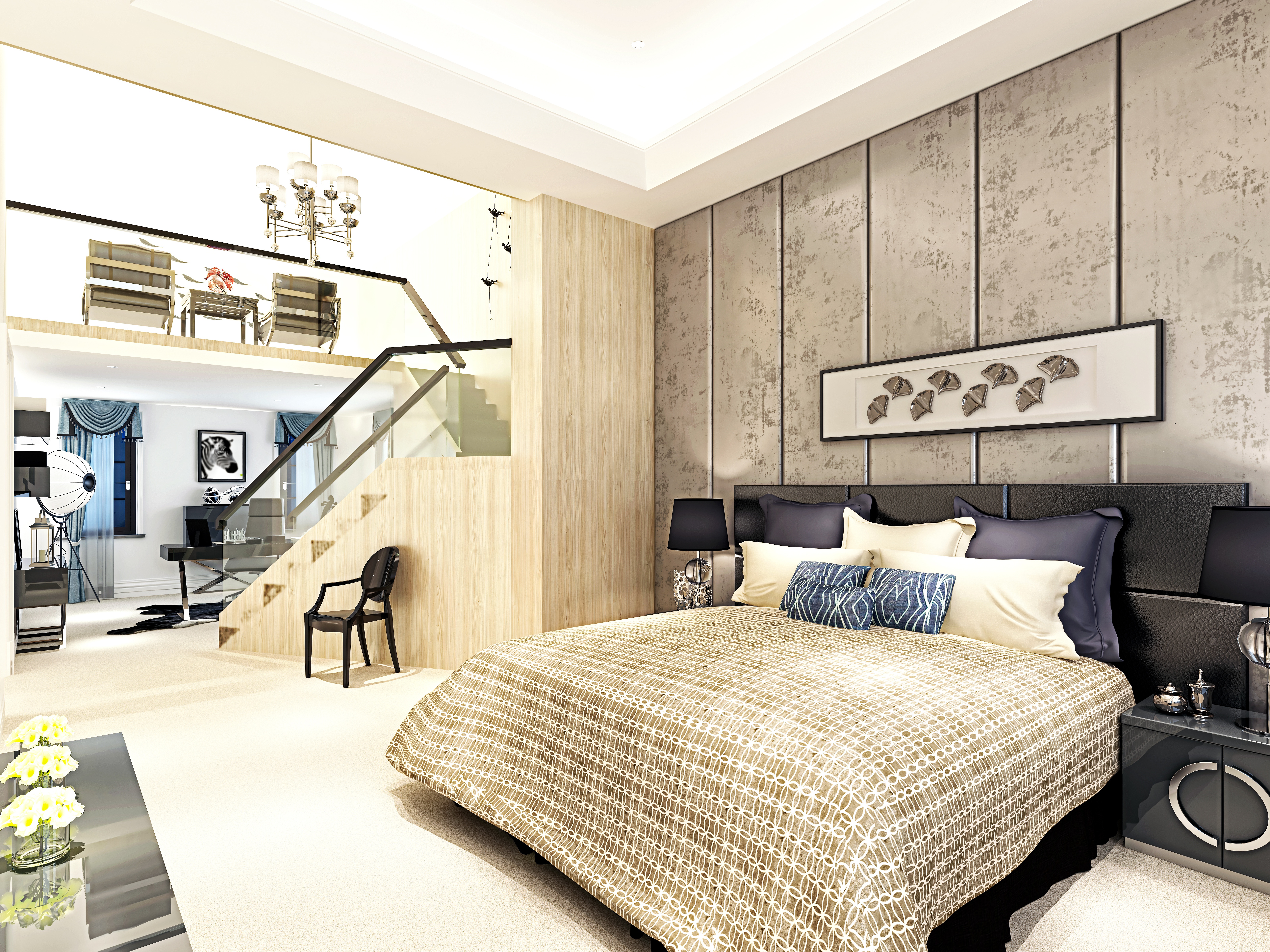 Обои: Квартира студия с большой кроватью в спальне