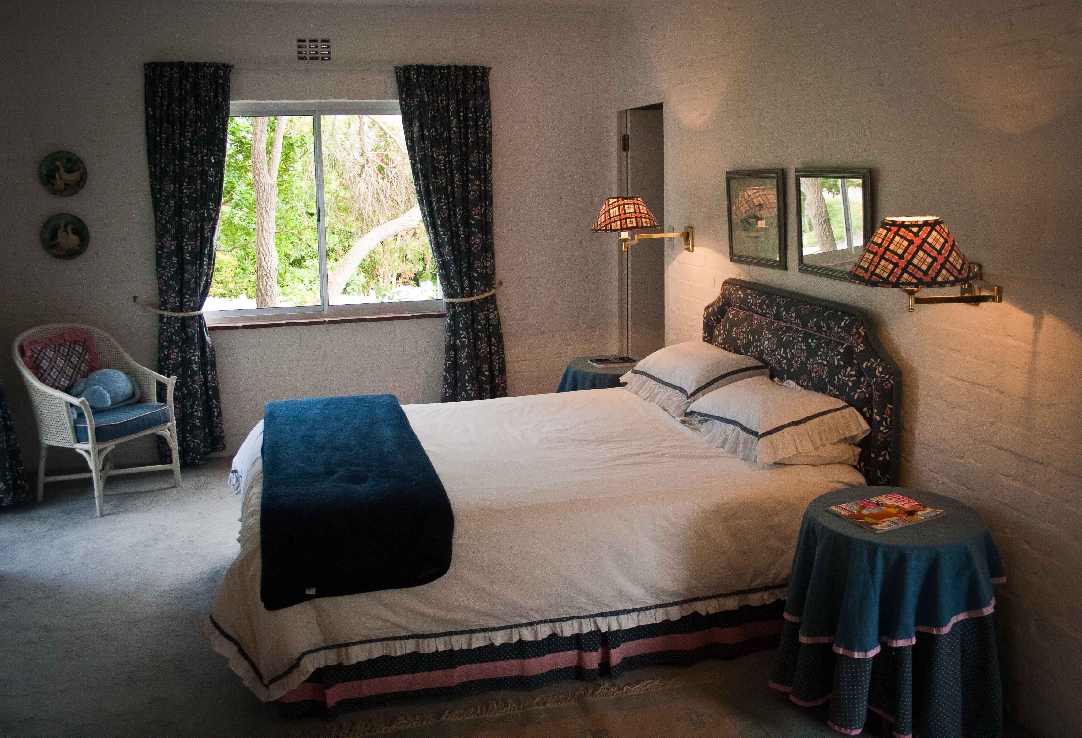 Две высокие кровати в спальной комнате