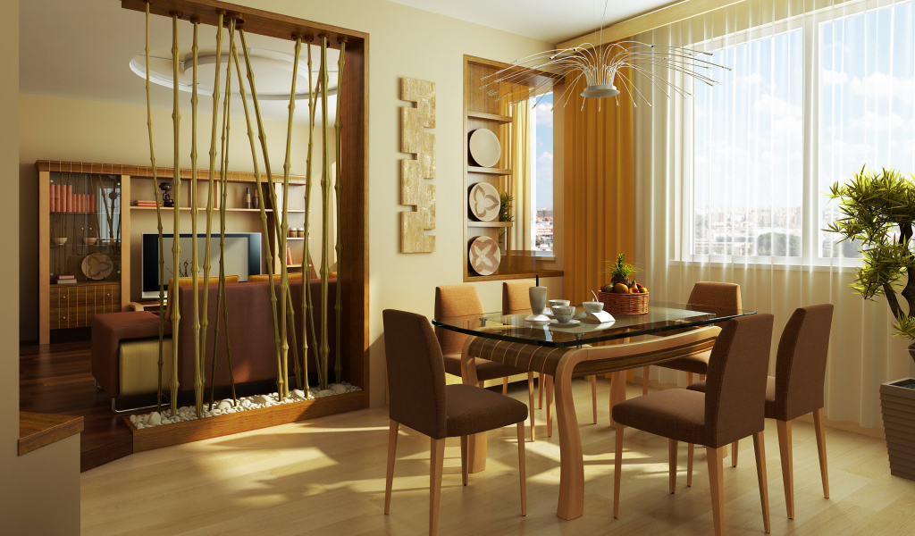 Столовая с обеденным столом и стульями у окна Обои для рабочего стола 1024x600