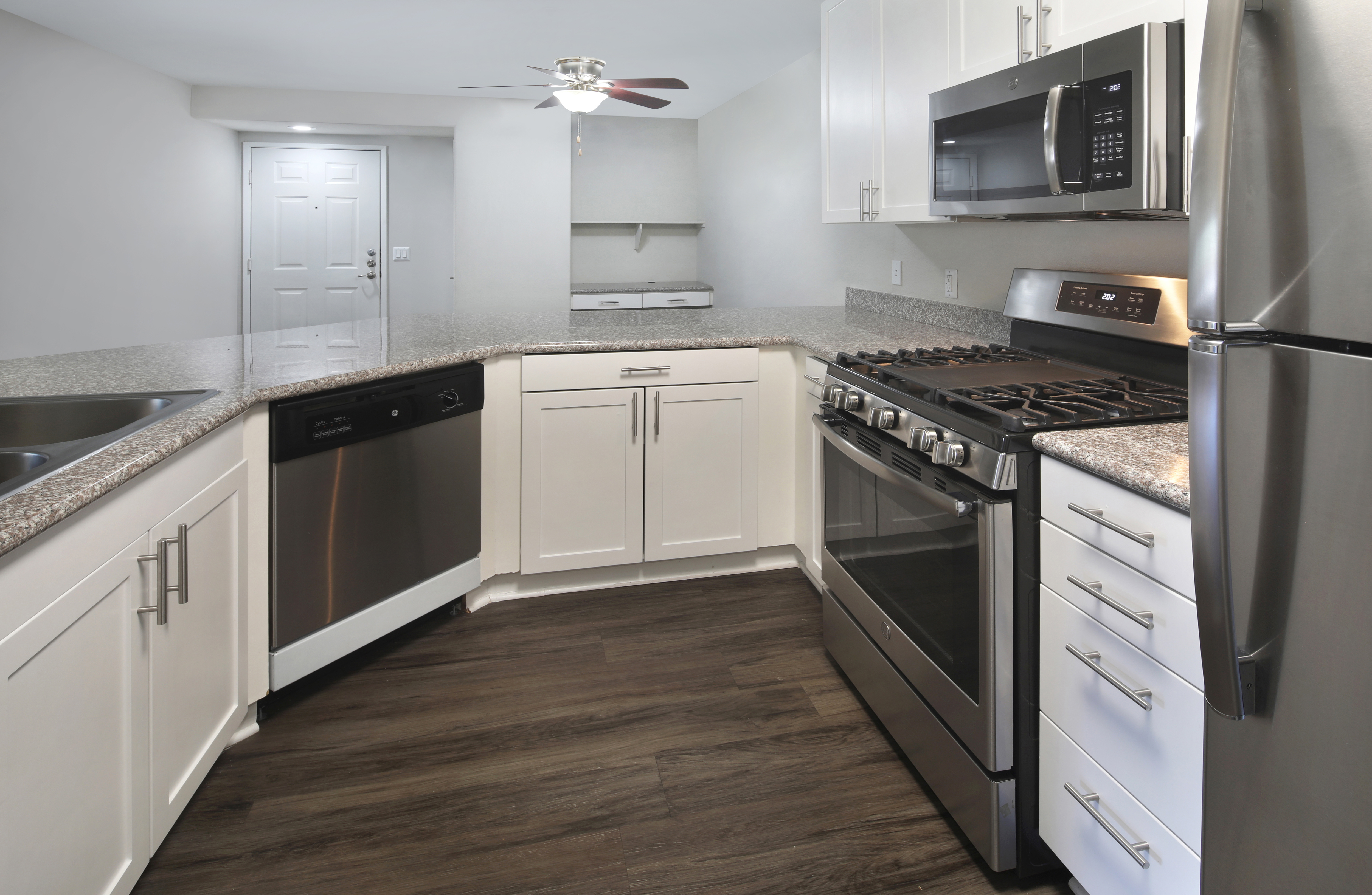 Большая кухня в серых тонах с большой плитой - 5000x3263