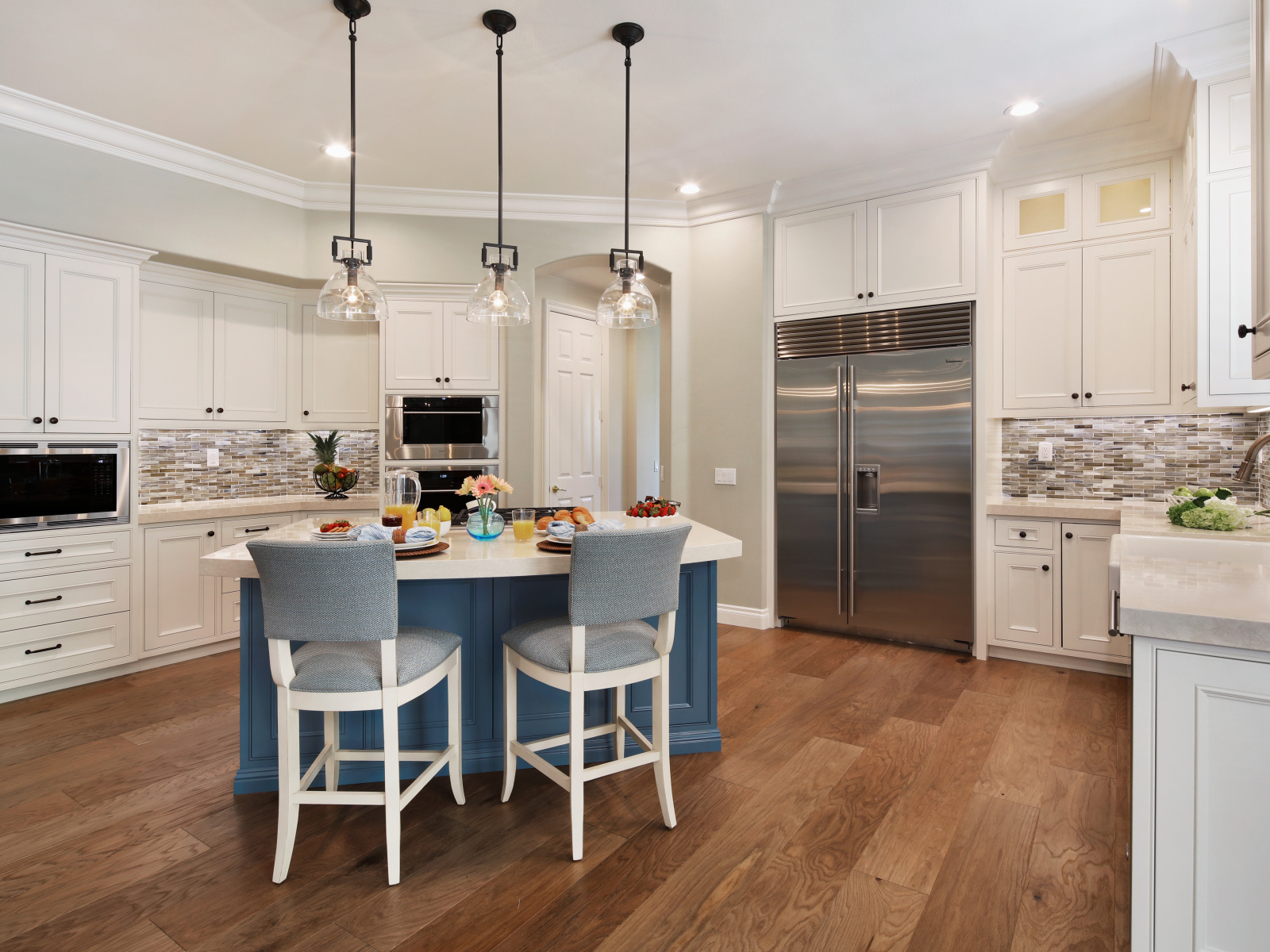 Светлая кухня с большим холодильником Обои для рабочего стола 1600x1200