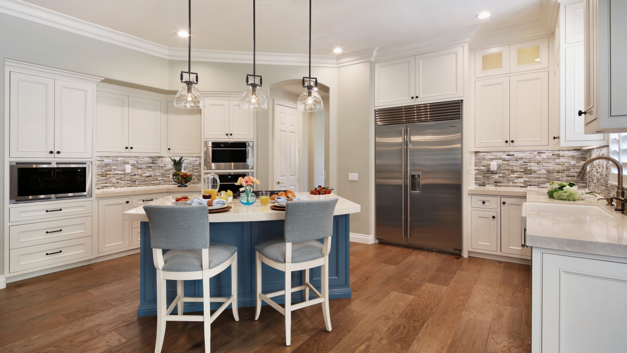 Светлая кухня с большим холодильником Обои для рабочего стола 1280x720
