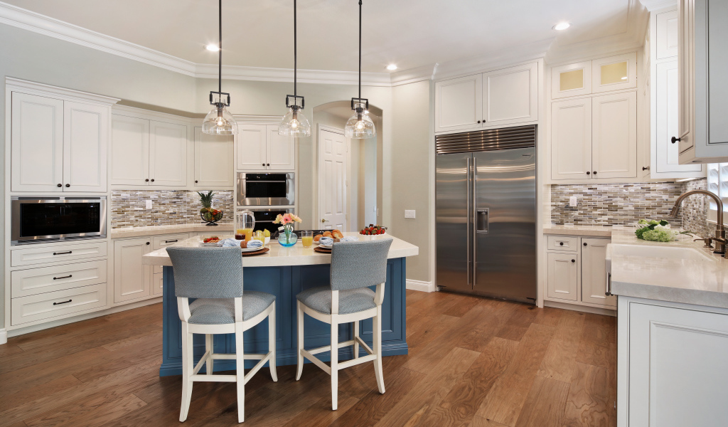 Светлая кухня с большим холодильником Обои для рабочего стола 1024x600
