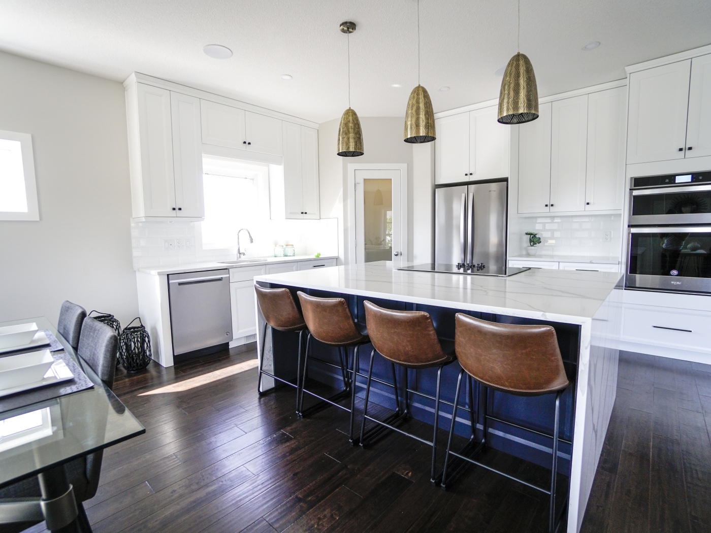 Белая мебель в кухне с кожаными креслами - 6000x4000