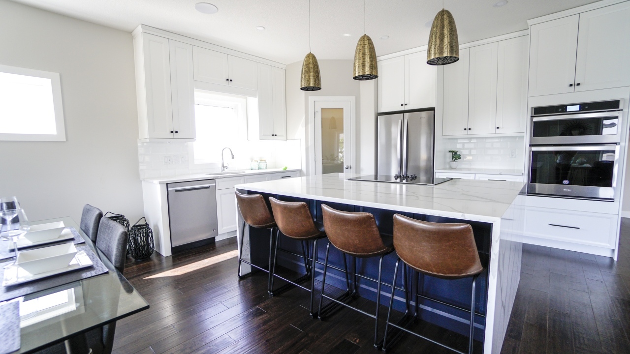 Белая мебель в кухне с кожаными креслами - 6000x4000