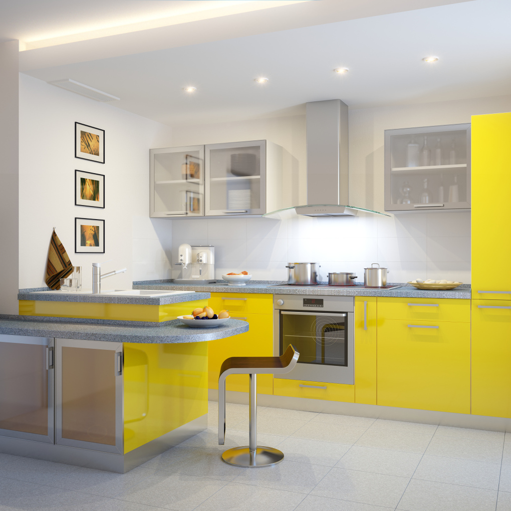 Желтая стильная кухня Обои для рабочего стола 1024x1024