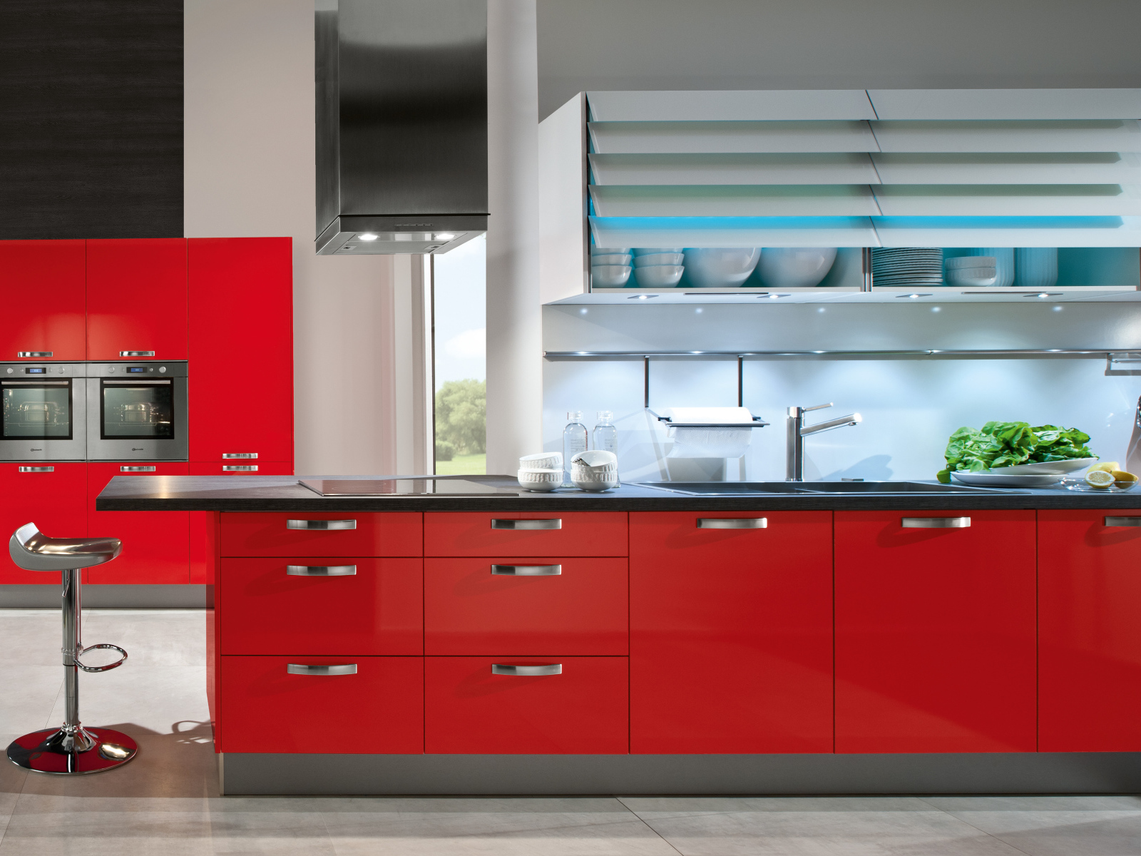 Стильная красная кухня Обои для рабочего стола 1600x1200