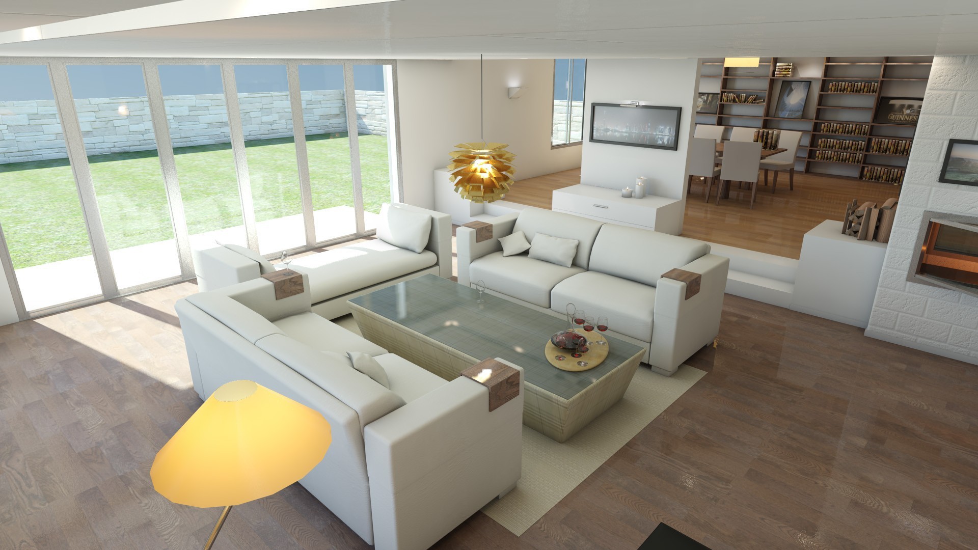 Белые кожаные диваны в светлой гостиной - 1920x1080