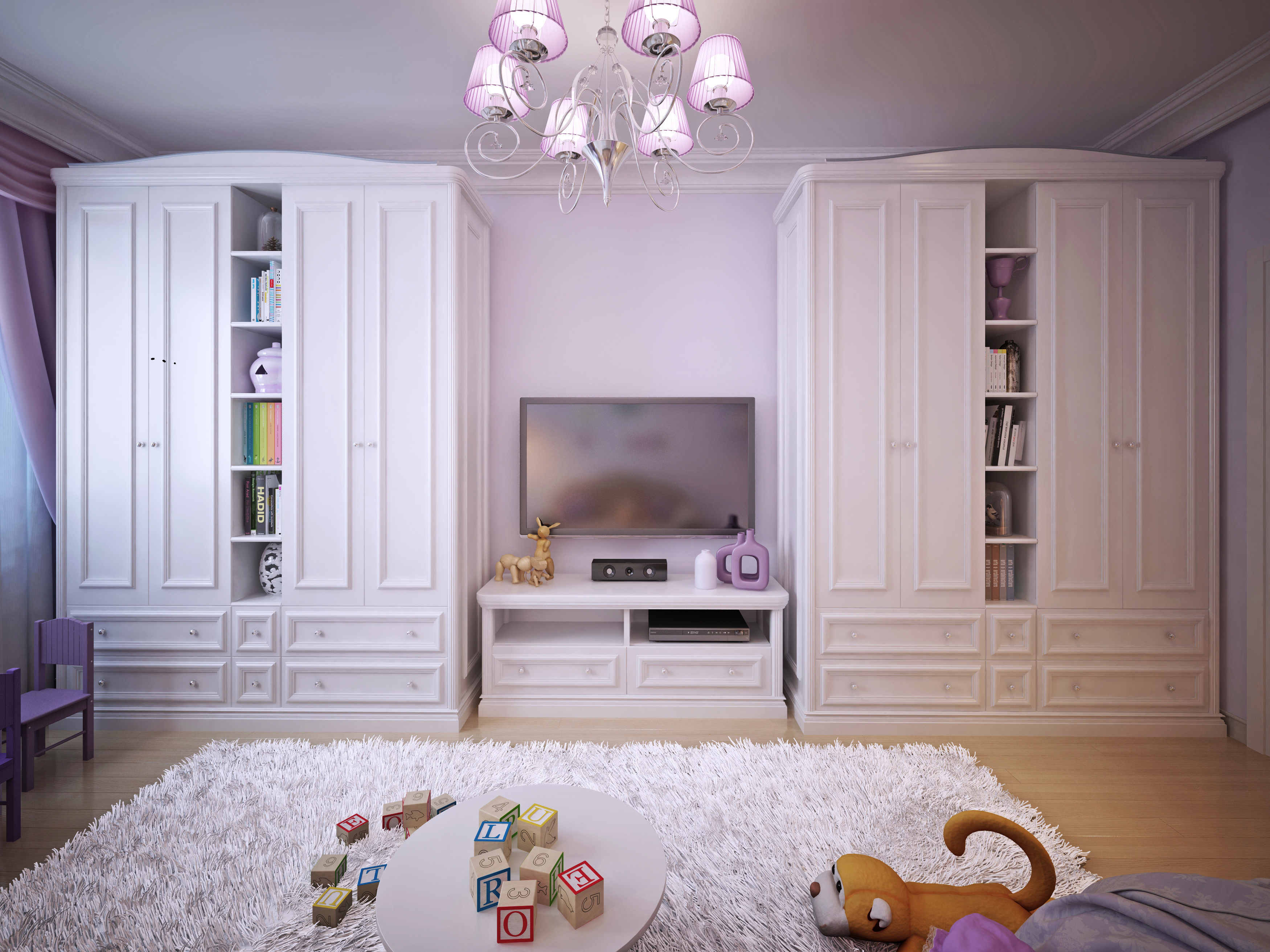 Детская комната с двумя большими белыми шкафами - 3500x2625