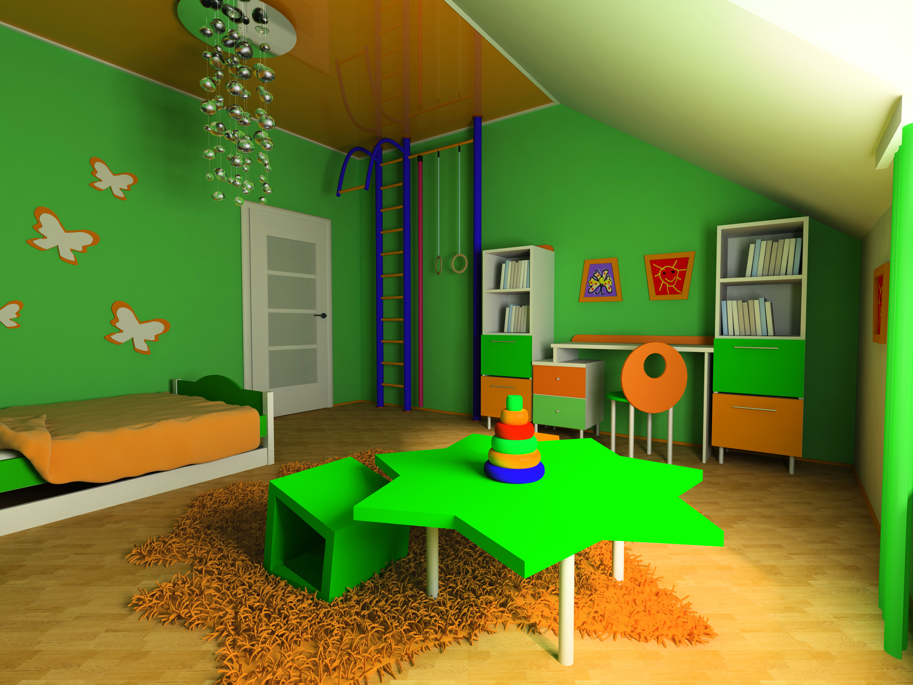 Детская комната с зелеными стенами и мебелью - 3000x2250