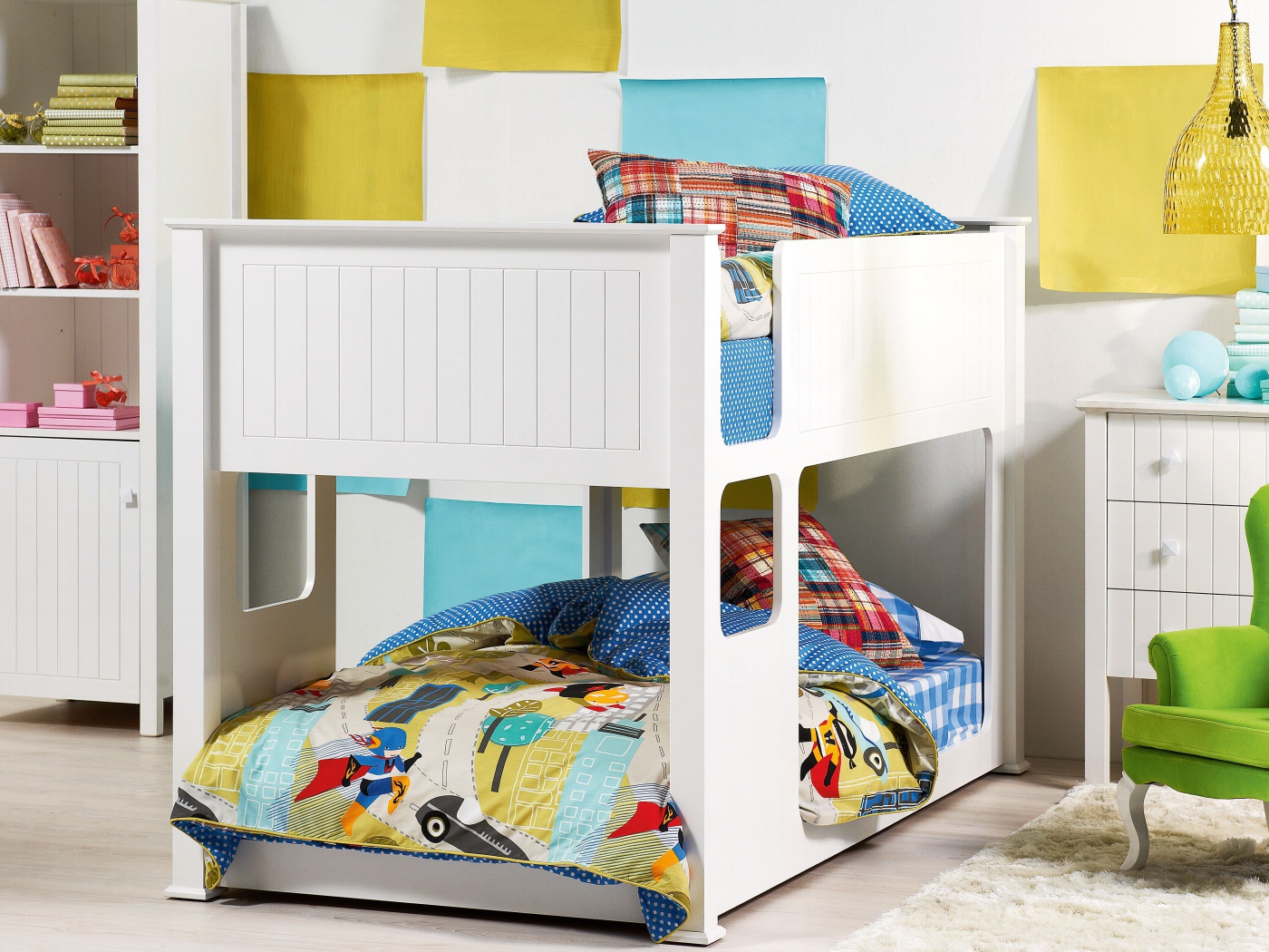Белая двухэтажная кровать в детской Обои для рабочего стола 1400x1050