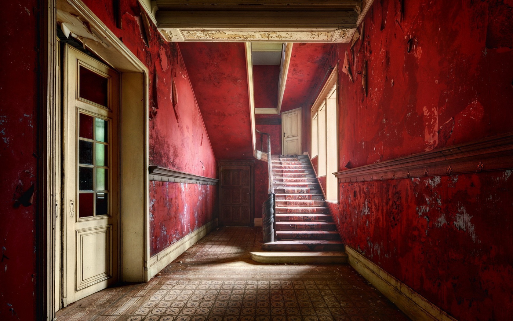 Красные стены внутри заброшенного дома Обои для рабочего стола 1680x1050