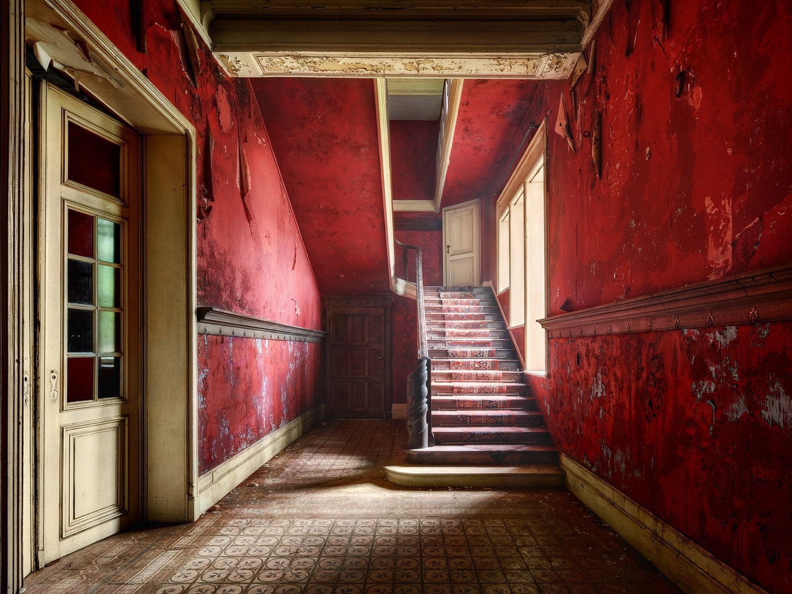 Красные стены внутри заброшенного дома Обои для рабочего стола 1600x1200